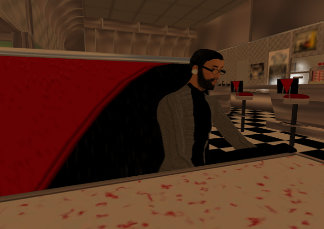 You can see the headset on my avatar in the pic to the right (click to enlarge – taken when I later returned to sit in the Crayon diner). Now, given that I didn’t really have time to spend in SL and there didn’t seem to be any other SecondTalk-equipped folks around when I was there, I never actually got to try it out. But I did see this one incredibly fundamental problem with the whole setup:
